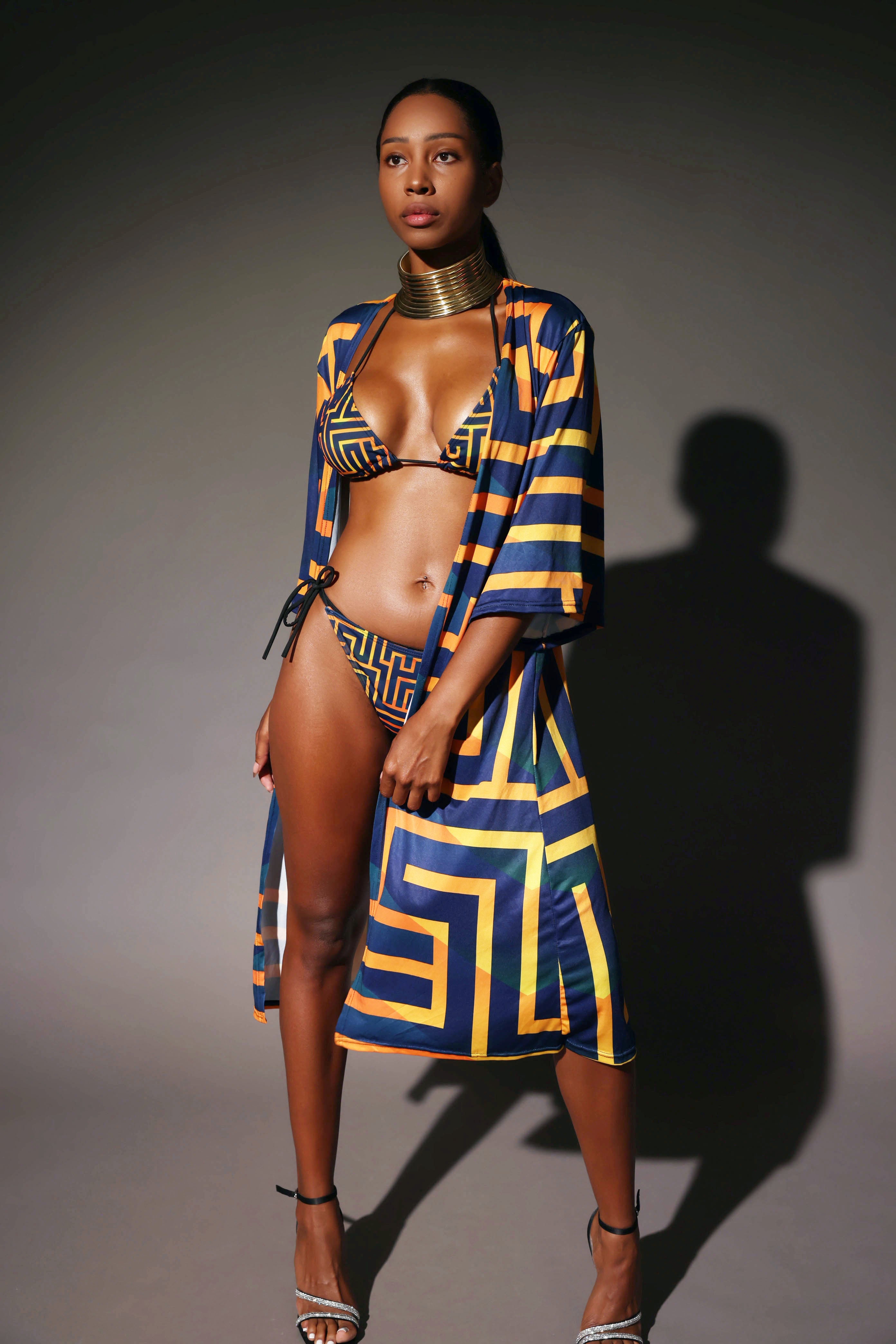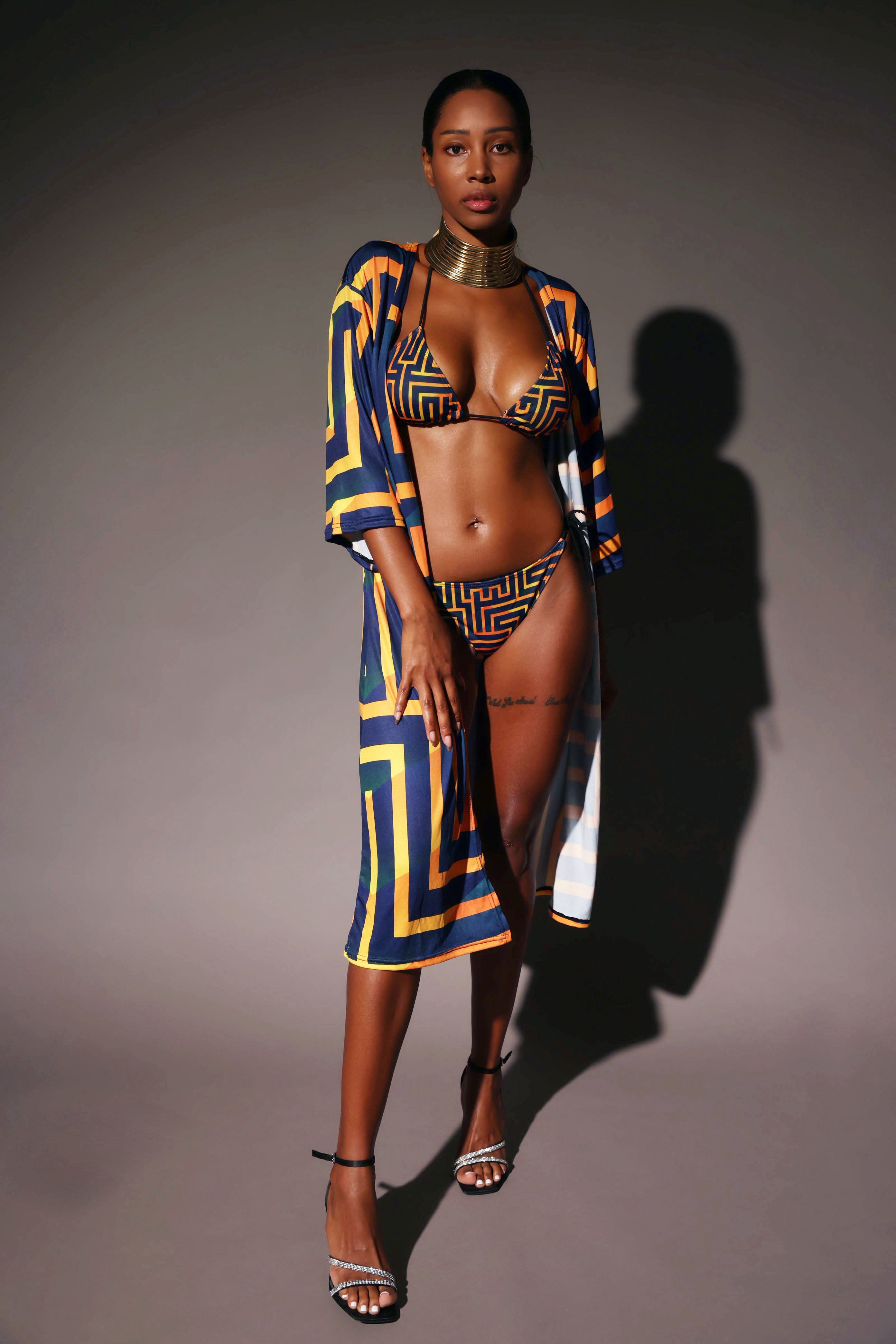 Bikini INAYA – Haut & bas • Motif Nkyinkyim (Résilience & Transformation)