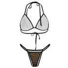 The halter triangle top ties at the neck and back for a flawless fit and can also be styled as an upside-down bikini top. The ultra-minimal string bottom enhances curves with a daring edge, delivering a look that is both fearless and feminine.